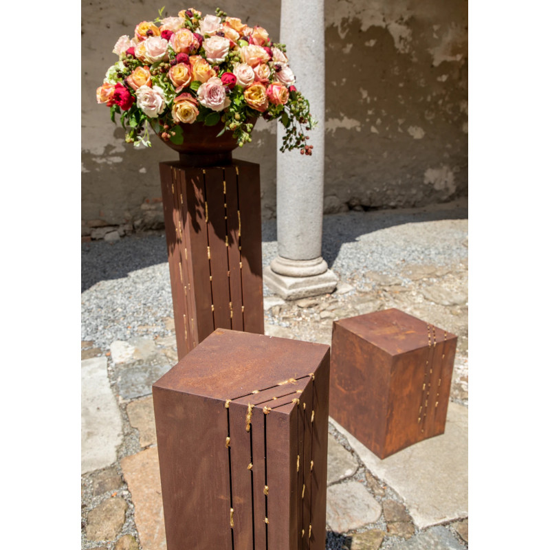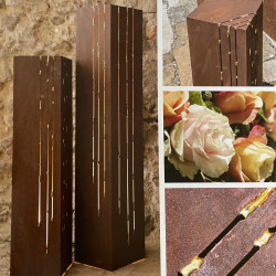 Auffallend edle Säule - nicht nur für den Garten oder die Terrasse. Goldveredelte Streifen nach der japanischen Kintsugi-Veredelung lassen einen sehr schönen Lichtschein durchstrahlen. Präsentieren Sie darauf eine schöne Schale, eine Pflanze oder lassen Sie die Säule einfach solo wirken.