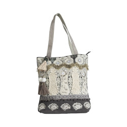 Die aufwändig gearbeitete und verzierte Tasche ist bestickt und vielen Details versehen.