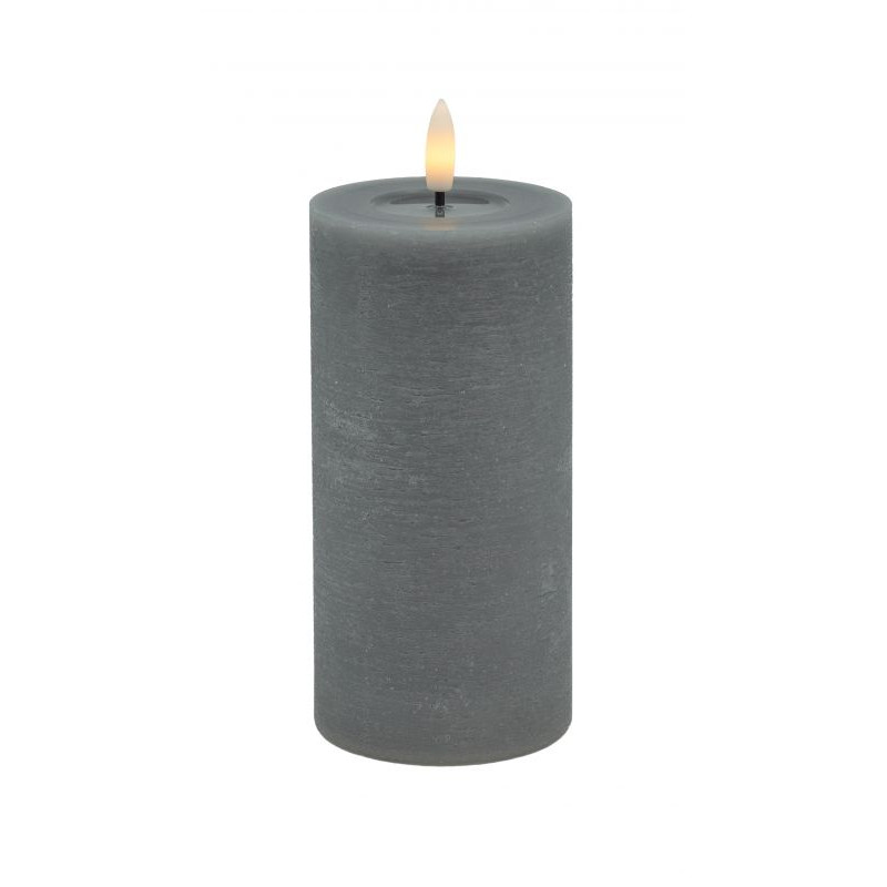 Echtwachs-LED-Stumpenkerze |Candela| Grey-Rustic-Melting 15cm
