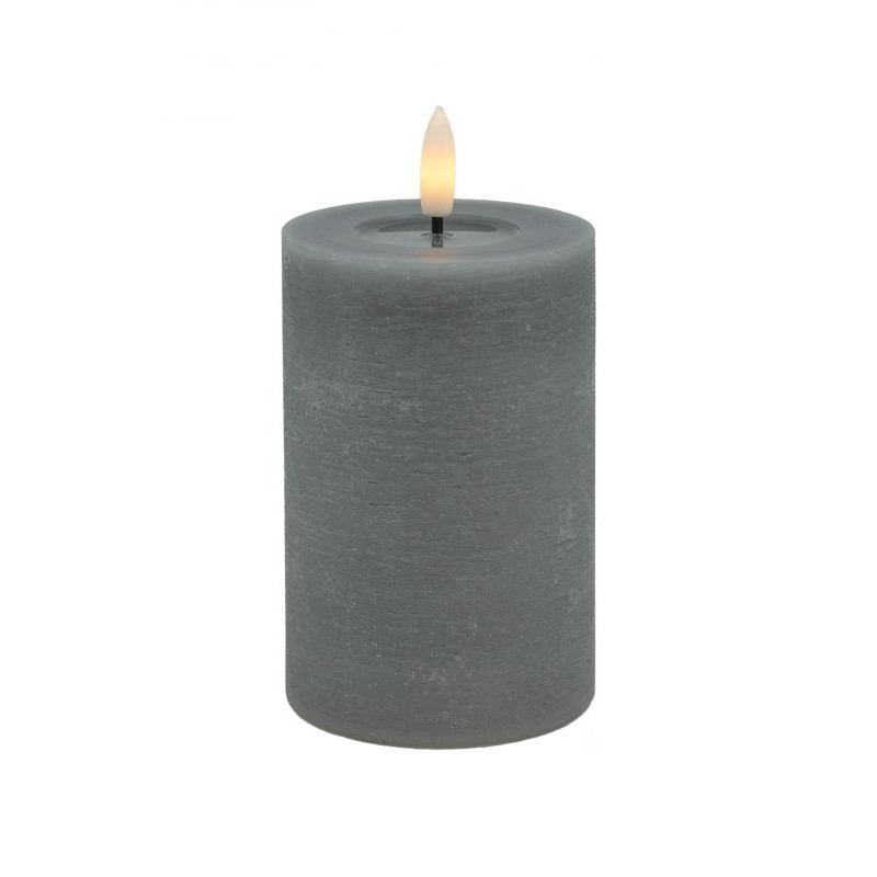 Täuschend echte LED-Kerze in Grey-Rustic-Melting mit echtem Wachsspiegel.