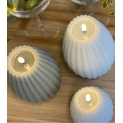 Täuschend echte Stump-LED-Wachskerze mit Rillen in der Basic-Farbe weiß mit Wachsspiegel der dänischen Firma Deluxe Homeart