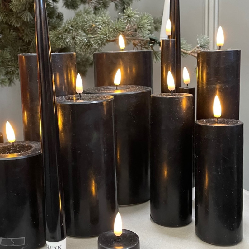 Die Kerzen sind sehr hochwertig mit einer sehr naturgetreuen warmweißen Flamme (über die Fernbedienung dimmbar) und einem Echtwachsspiegel, der geschmolzenes Wachs vortäuscht, verarbeitet.