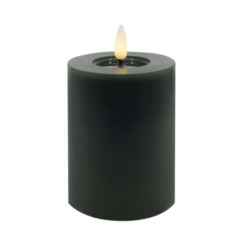 täuschend echte LED-Kerze in edlem dunklem Tannengrün mit echtem Wachsspiegel und Timerfunktion der dänischen Firma Deluxe Homeart