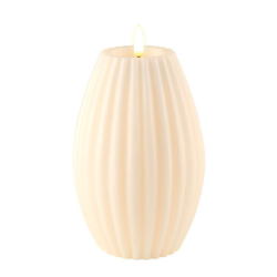 Täuschend echte Stump-LED-Wachskerze mit Rillen in feinem Creme-weiß mit Wachsspiegel der dänischen Firma Deluxe Homeart