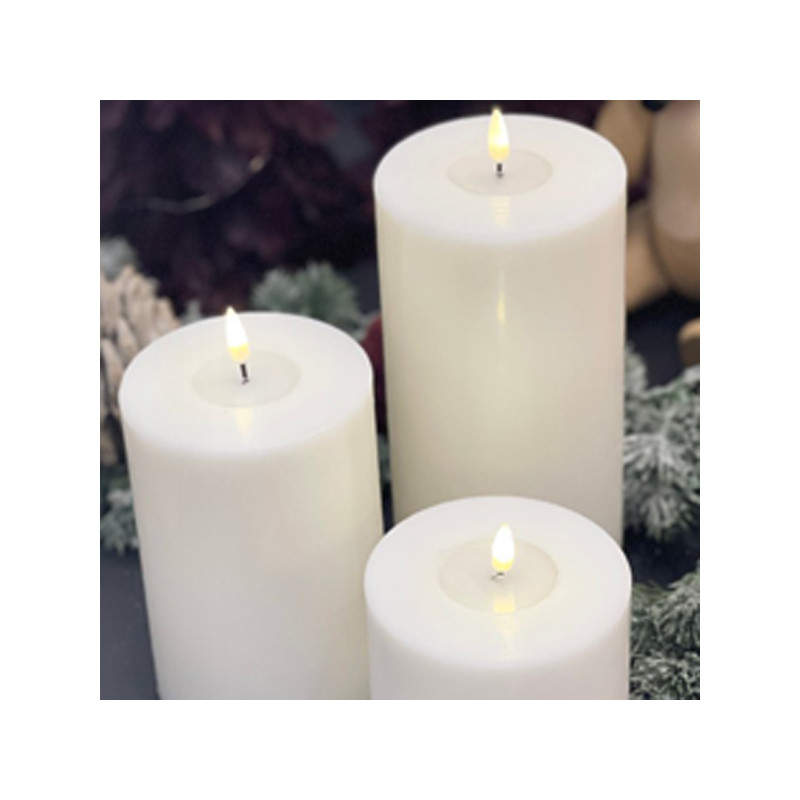 Täuschend echte LED-Kerze in klassisch edlem weiß mit echtem Wachsspiegel der dänischen Firma Deluxe Homeart