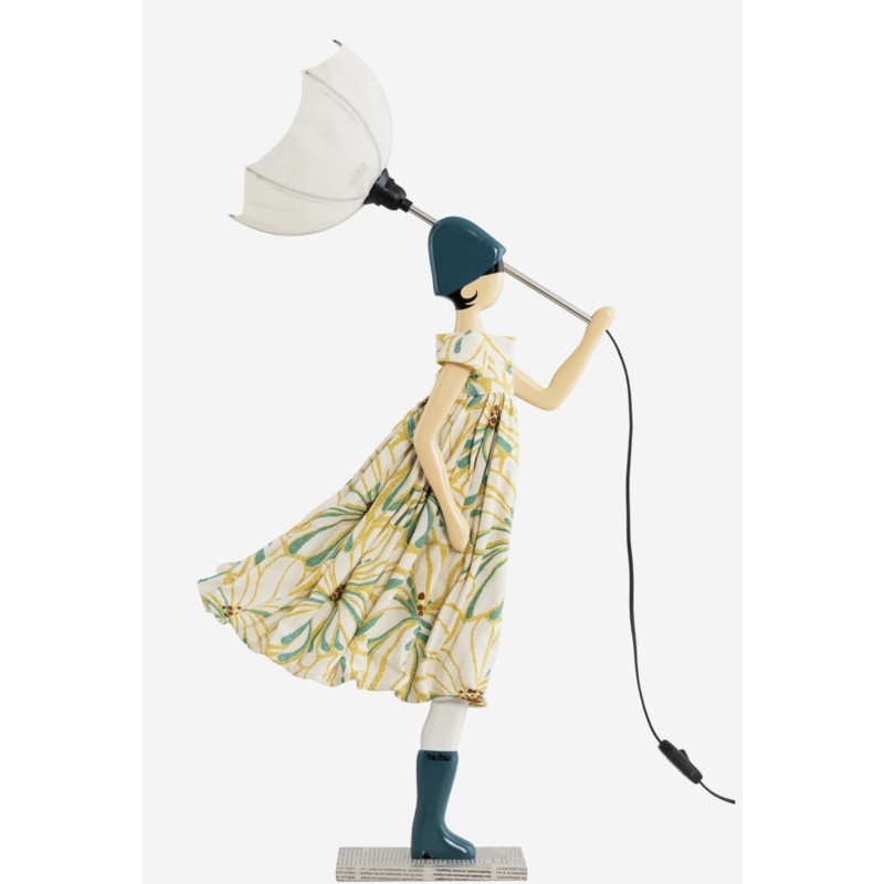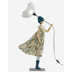 Jede Lampe ist eine kleine Persönlichkeit. Die Kollektion ist inspiriert nach dem Nordwestwind, einem wichtigen Element von Thessaloniki, der sogar der den kleinen Ladies Bewegung verleiht. Der Lampenkörper aus Holz ist hochwertig verarbeitet und wird in Handarbeit von einer griechischen Kunstmanufaktur hergestellt und handbemalt. Der Rock bzw. das Kleid ist aus versteiften Textilien.