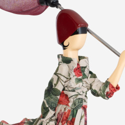 Jede Lampe ist eine kleine Persönlichkeit. Die Kollektion ist inspiriert nach dem Nordwestwind, einem wichtigen Element von Thessaloniki, der sogar der den kleinen Ladies Bewegung verleiht. Der Lampenkörper aus Holz ist hochwertig verarbeitet und wird in Handarbeit von einer griechischen Kunstmanufaktur hergestellt und handbemalt. Der Rock bzw. das Kleid ist aus versteiften Textilien.