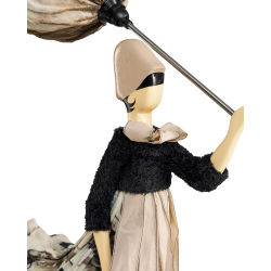 Jede Lampe ist eine kleine Persönlichkeit. Die Kollektion ist inspiriert nach dem Nordwestwind, einem wichtigen Element von Thessaloniki, der sogar der den kleinen Ladies Bewegung verleiht. Der Lampenkörper aus Holz ist hochwertig verarbeitet und wird in Handarbeit von einer griechischen Kunstmanufaktur hergestellt und handbemalt. Der Rock bzw. das Kleid ist aus versteiften Textilien.
