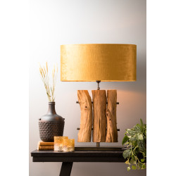aussergewöhnliche Tischleuchte für modernes Wohnen im Natural-Stil. Auf einem Eisensockel sind drei massive Holzstämme sind mit Eisenstäben verbunden. Sehr massive und hochwertige Verarbeitung