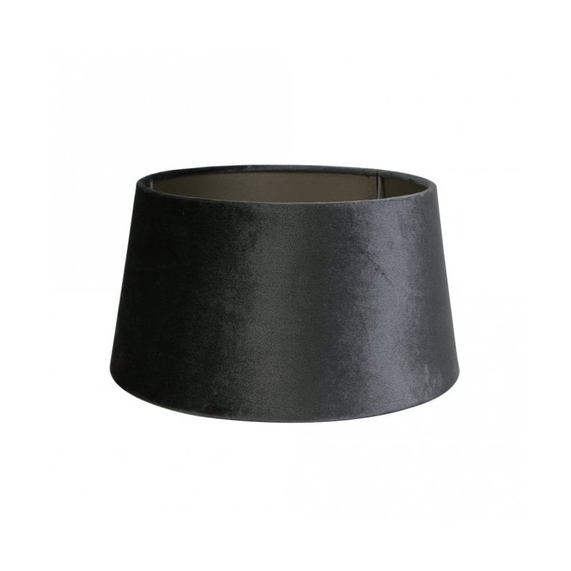 Außen besticht er durch feinen Samtvelour in edlem zink-graphit-grauem und innen durch leicht glänzendem taupe. Der Schirm läßt kein Licht durchscheinen.