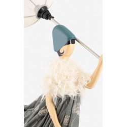 Jede Lampe ist eine kleine Persönlichkeit. Die Kollektion ist inspiriert nach dem Nordwestwind, einem wichtigen Element von Thessaloniki, der sogar der den kleinen Ladies Bewegung verleiht. Der Lampenkörper aus Holz ist hochwertig verarbeitet und wird in Handarbeit von einer griechischen Kunstmanufaktur hergestellt und handbemalt. Der Rock bzw. das Kleid ist aus versteiften Textilien.