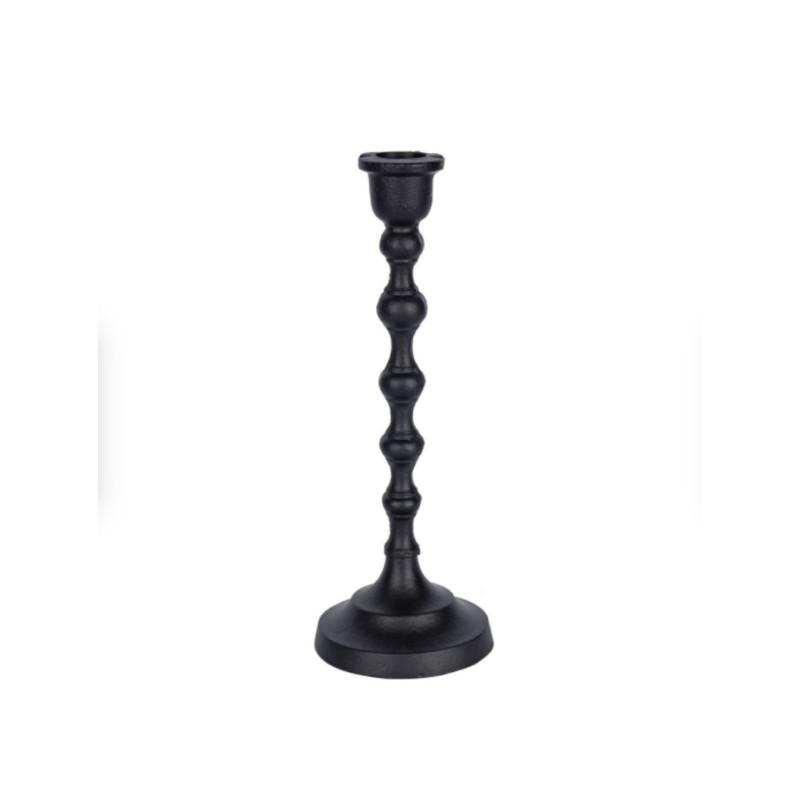 Graziler modern gestalteter Kerzenhalter in matt schwarzem Metall.