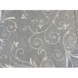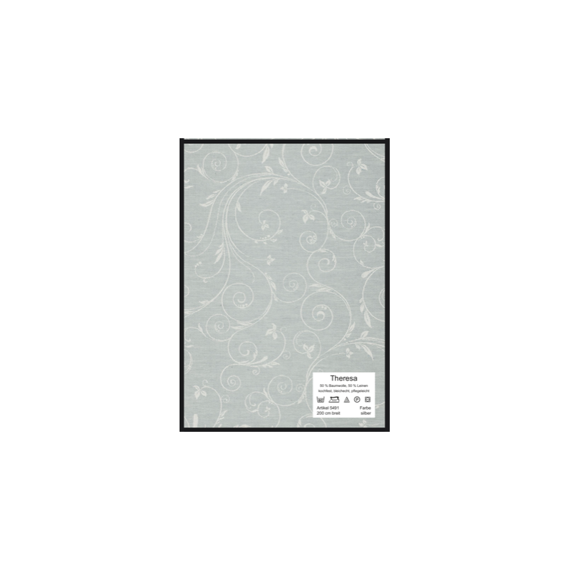 Der geschmeidige feine silbergraue Halbleinen-Tischläufer in fein gewebtem allover Muster.