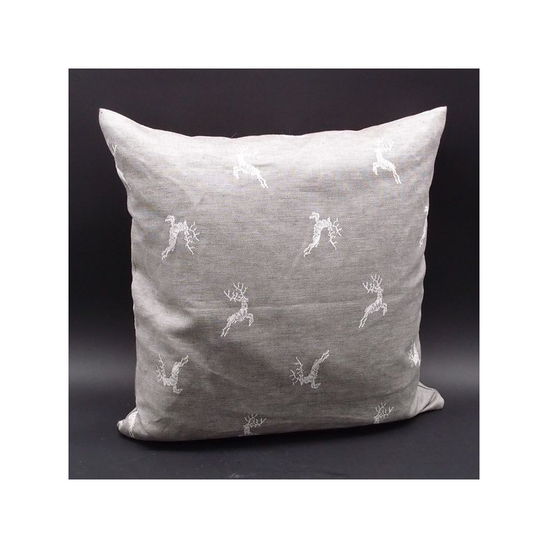 Edler Chalet-Landhaus-Chic mit Stil - Edles Kissen in sehr weicher Haptik mit beidseitig wunderschön und aufwändig eingewebten weißen kleinen springenden Hirschen auf taupemelangefarbigem Untergrund. Ein wundervolles dekoratives Accessoire mit Kuschelfaktor, das all Blicke auf sich zieht, ohne aufdringlich zu wirken und für Hüttenzauber und Chalet-Feeling sorgt.