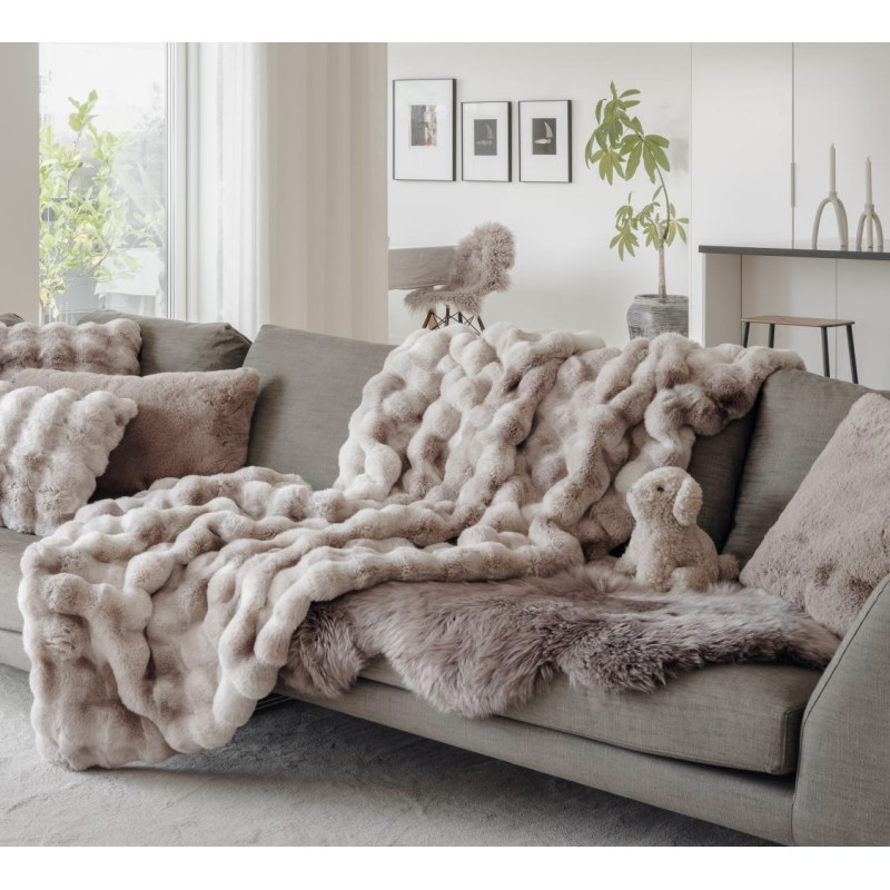 Die dekorative hochwertige Wohndecke Misty ist traumhaft weich kuschelig und warm sowie trendig. Sie zeichnet sich durch ihre hochwertige Qualität und Verarbeitung aus. Ein Wohnaccessoire, das eine unwiderstehliche Gemütlichkeit und kuschelige Wärme schenkt und somit in der kalten Jahreszeit nicht fehlen darf.